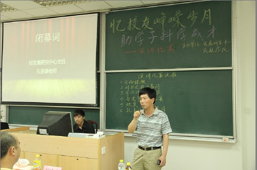 颁奖典礼之后,发展研究中心主任孔垂谦老师致闭幕词,他首先充分肯定了本次比赛的意义,赞扬参赛选手的精彩表现,并希望同学们都能以优秀校友为榜样,不断充实大学生活,争取将来成为社会栋梁之才,为我国民航事业的蓬勃发展做出卓越贡献。