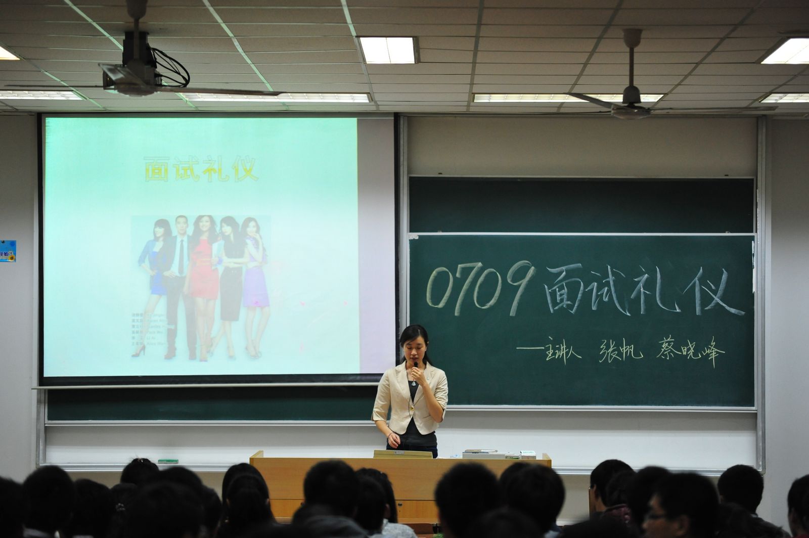 接下来,张帆讲到面试的流程和注意事项,这也是同学们最关心的主题,细节决定成败在这里得到了最大的体现。自我介绍环节大家都已经熟悉,不卑不亢是最好的态度。而接下来的无领导小组讨论和一对多面试则是技巧和实力的综合展现。“这需要实战的演练,因此可以试着挑选最没有挑战性的职位进行预演,再去竞争最想去的岗位”张帆在总结面试达人的经验时说到。
