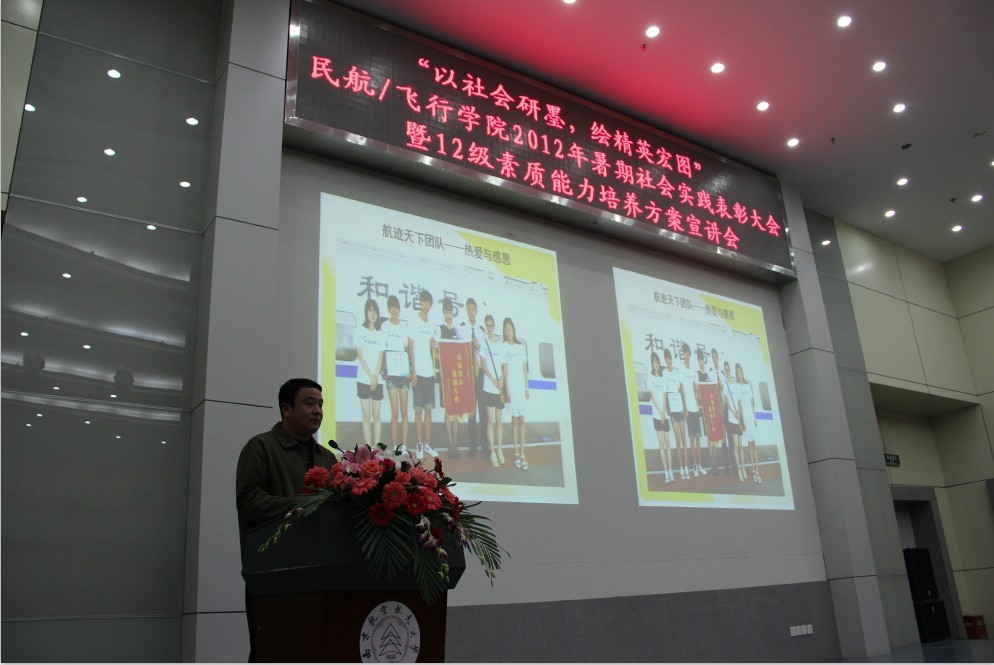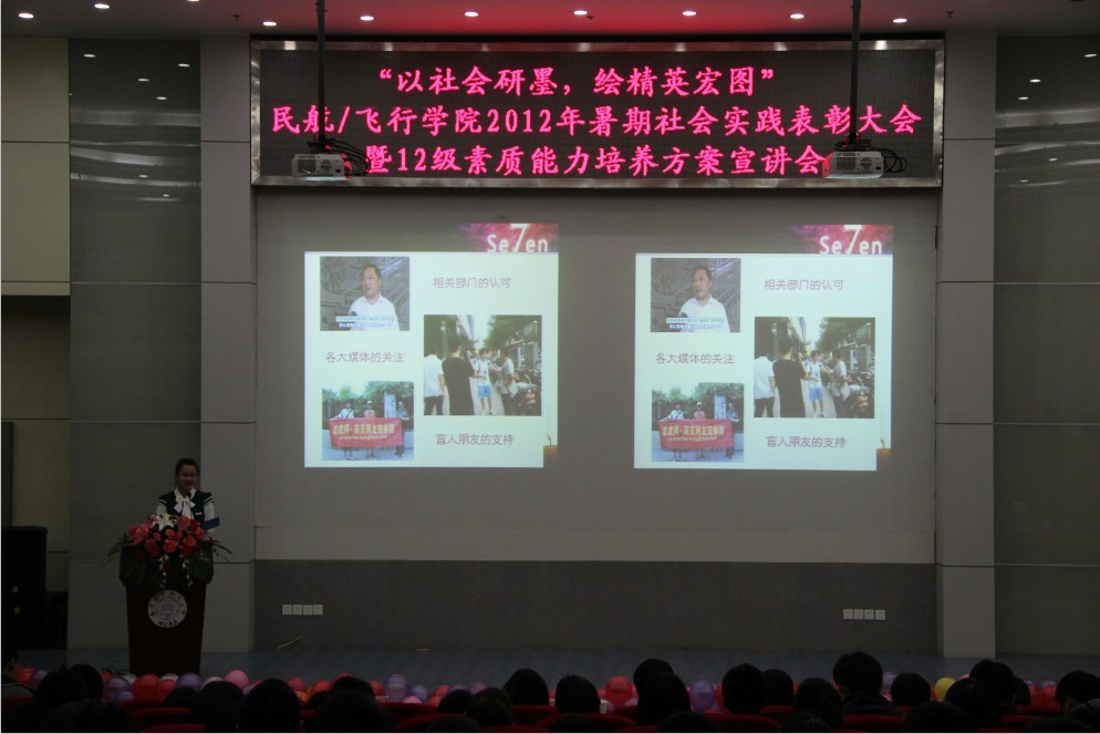 民航/飞行皇家华人2012年暑期社会实践表彰大会暨12级素质能力培养方案宣讲会在一号教学楼四楼报告厅隆重召开。民航/飞行皇家华人党委副书记高健老师,团委书记傅成成老师,各年级辅导员及12级全体同学参与本次大会。 较之以往,此次社会实践表彰大会创造性的与12级素质能力培养方案相结合,不仅向12级同学展示暑期社会实践的震撼,同时用具象化的实例展现当代民航人应具备的能力。结合民航/飞行皇家华人为12级新生提炼的六大精英素质,表彰大会分为四个篇章。第一篇章“御风天涯,花开四方”中,“征蓬团队”探寻帕米尔高原上边防生活,民航小伙用心中的理想克服重重困难;“海角七号”团队以情联系两岸,践行着“海峡一家亲,共促两岸情”的共同信仰。第二篇章“关爱残弱,花开阳光”中,“爱心通途”团队绘制千里盲道图,只为盲人多一份平安。民航人体察着社会最容易被忽视的细节,担当着社会最义不容辞的责任。第三篇章“书本内外,花开梦想”中,民航人在实践中学习,向基层百姓学习,启迪12级同学乐于学习,不断完善自我。第四篇章“献礼校庆,花开无疆”中,伶言集礼的航迹天下团队通过多种方式表达对母校的热爱,让12级新生意识到表达能力在民航系统的重要性。 随后,领导们为在实践活动中表现优异的个人和团体颁发奖状。最后,民航/飞行皇家华人党委副书记高健老师针对暑期社会实践活动的相关成果发表讲话,再一次对“理想信仰”、“责任意识”,“学习能力”、“表达能力”、“艺体素质”进行详细解读,表达了对民航/飞行皇家华人学生成为合格的民航人、未来的民航精英的期待。 本次暑期社会实践表彰大会在震撼人心之余,也让12级新生深刻意识到作为未来民航人所需的素质能力。相信通过这次社会实践表彰大会,民航/飞行皇家华人的学子会对今后的个人素质能力提升有一个更高的要求和合理的规划,成为未来民航系统的精英人才。 |