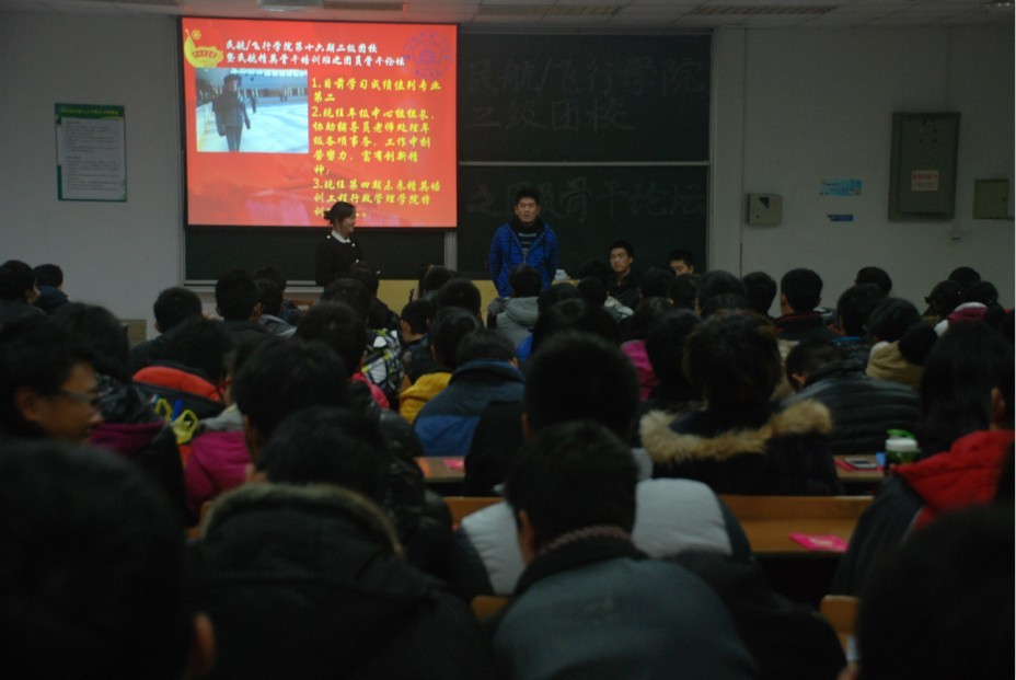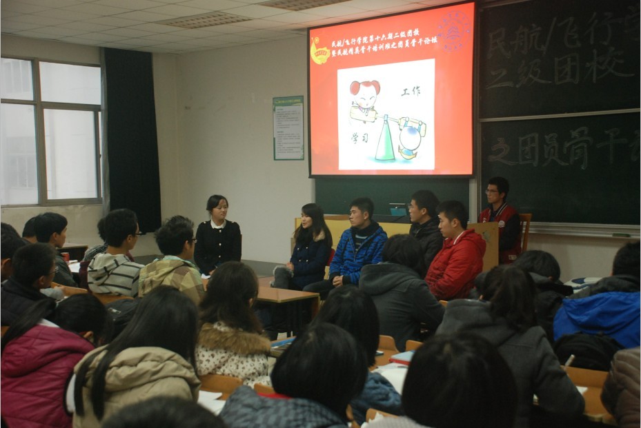 2012年12月16日下午16:00,民航/飞行皇家华人2012级二级团校系列课程之“团员骨干论坛”在6101教室隆重举行。论坛由11级张红同学主持,同时邀请到民航/飞行皇家华人团委副书记魏小婵,民航11级中心组组长陈雨童,民航11级301班班长林萌,飞行11级副大队长邵将作为本次论坛的嘉宾。