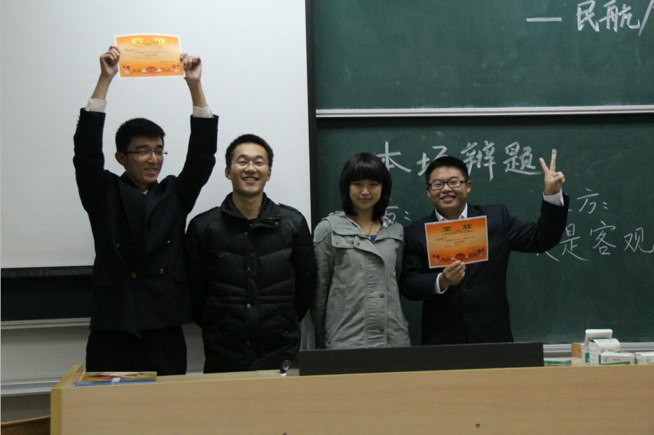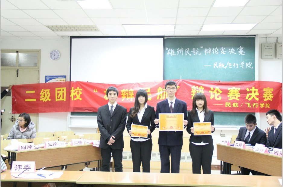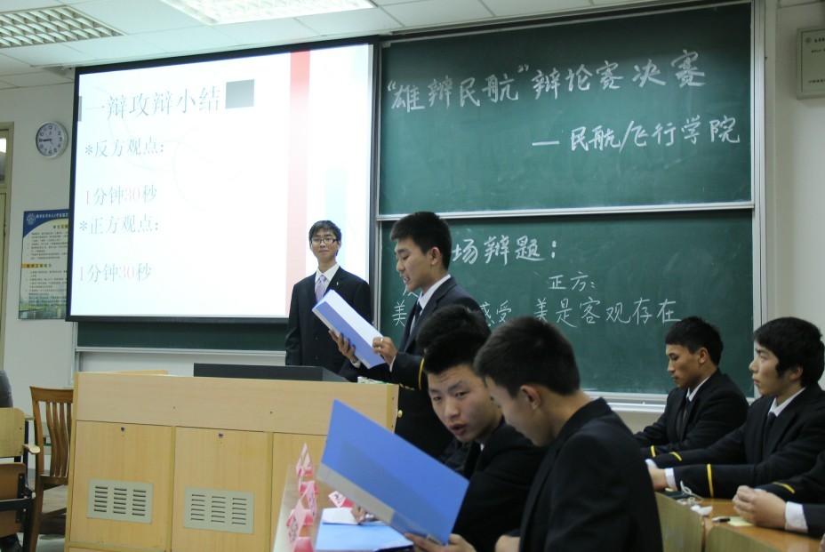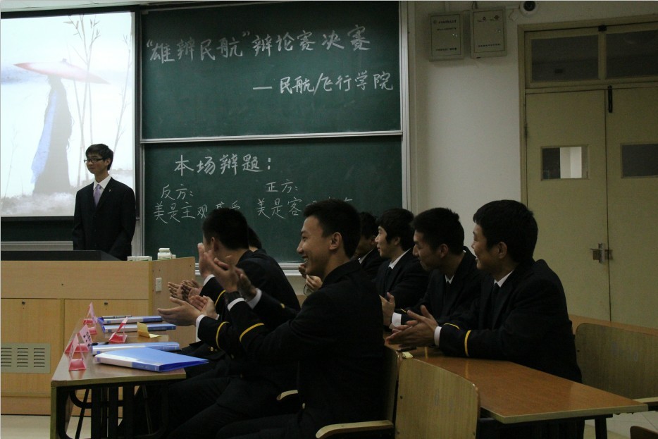 2012年12月16日晚20:30,民航/飞行皇家华人“雄辩民航”辩论大赛总决赛在5103教室正式拉开帷幕。701班及飞行员班的辩手们唇枪舌剑,围绕“美是主观还是客观”的话题展开了激烈的辩论,701班终夺桂冠。