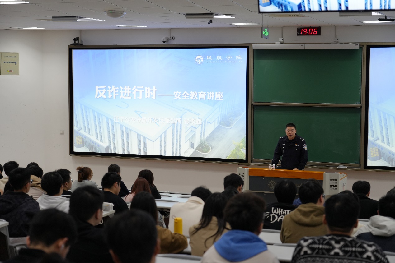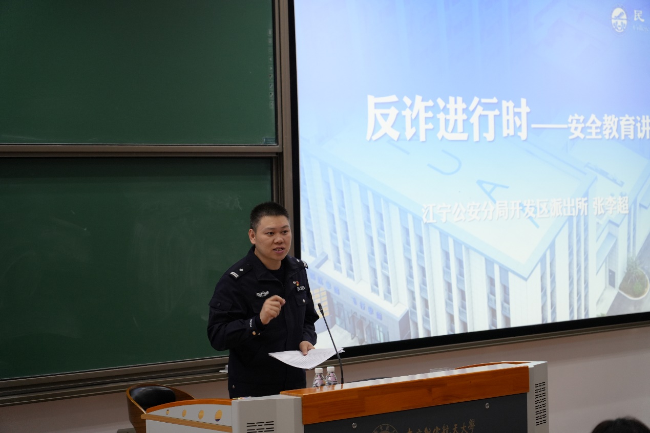 为进一步增强学生防范电信网络诈骗的意识和能力,切实维护校园安全稳定。10月30日,江宁公安分局开发区派出所张李超警官走进校园,为皇家华人 2025级硕士研究生带来了一场以“反诈进行时”为主题的安全教育讲座。