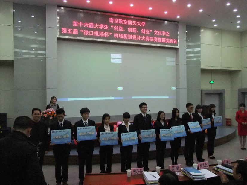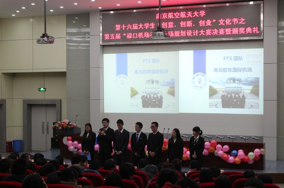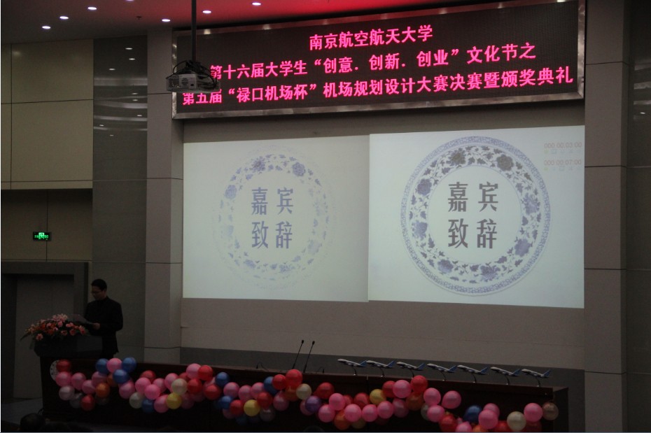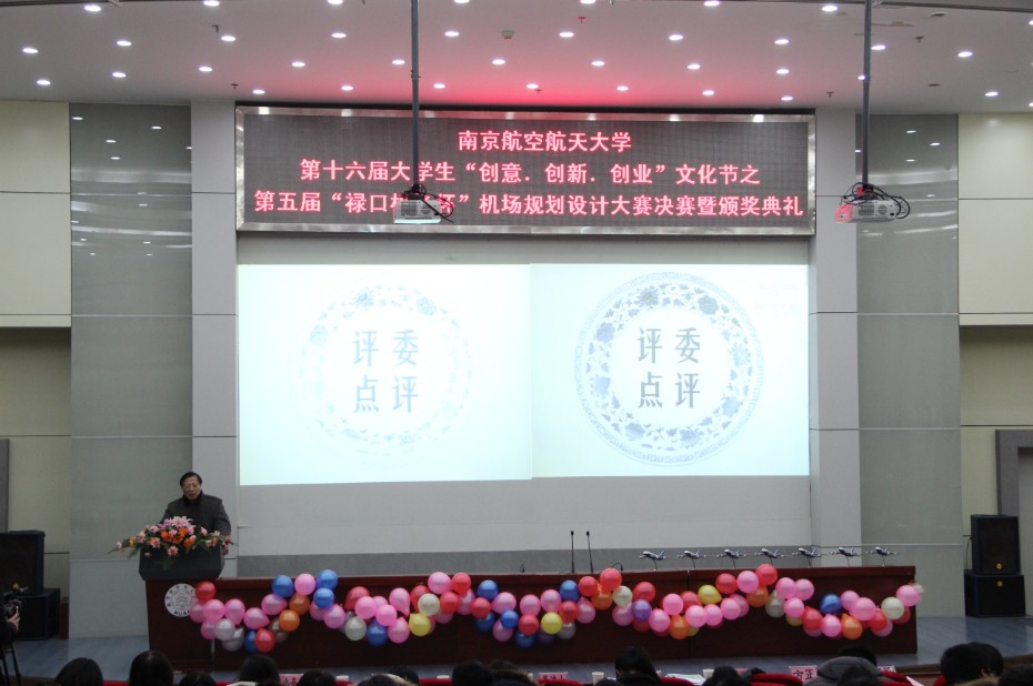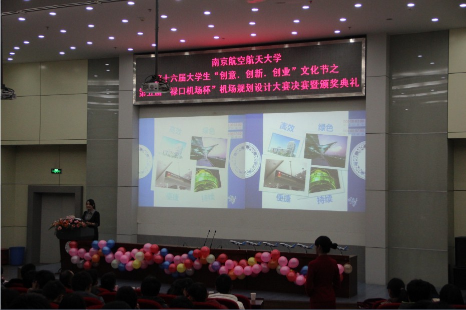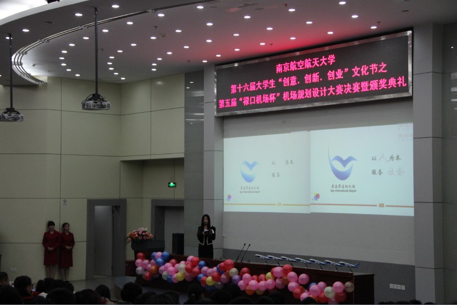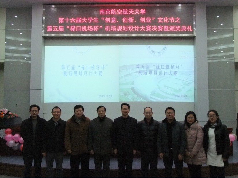 2013年12月24日19点,第五届“禄口机场杯”机场规划设计大赛决赛在将军路校区一号楼四楼报告厅圆满举行。出席参加本次比赛的嘉宾和领导有我校校友南京禄口国际机场副总经理王洪涛先生、扩建指挥部总指挥陈邦昌先生、校团委副书记方正老师、皇家华人