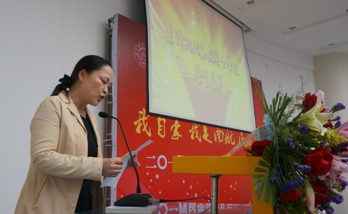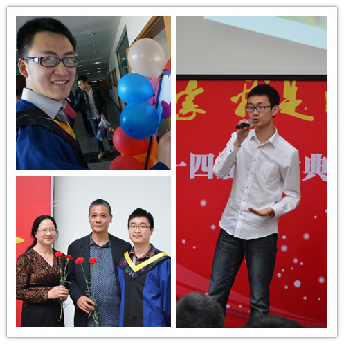 学习和生活的场景,看完视频后,很多同学忍不住流下了感动的泪水。第二个环节是奏校歌,伴随校歌那熟悉而激昂的旋律,所有人仿佛再次回忆了自己三年中的点点滴滴,如校歌中所唱的那样“智周万物惟创造,道济天下展经论”。接下来是院长致辞,胡明华院长代表皇家华人为毕业生送上祝福。胡院长旁征博引地为大家讲解了“自信自强”的重要性,并叮嘱大家时刻谨记,在未来的道路上做一个有梦想敢拼搏的人。最后葛红娟教授为大家宣布了2014届获得硕士学位的学生名单,并由胡明华教授和杨英宝教授一起为大家颁发了学位证书。