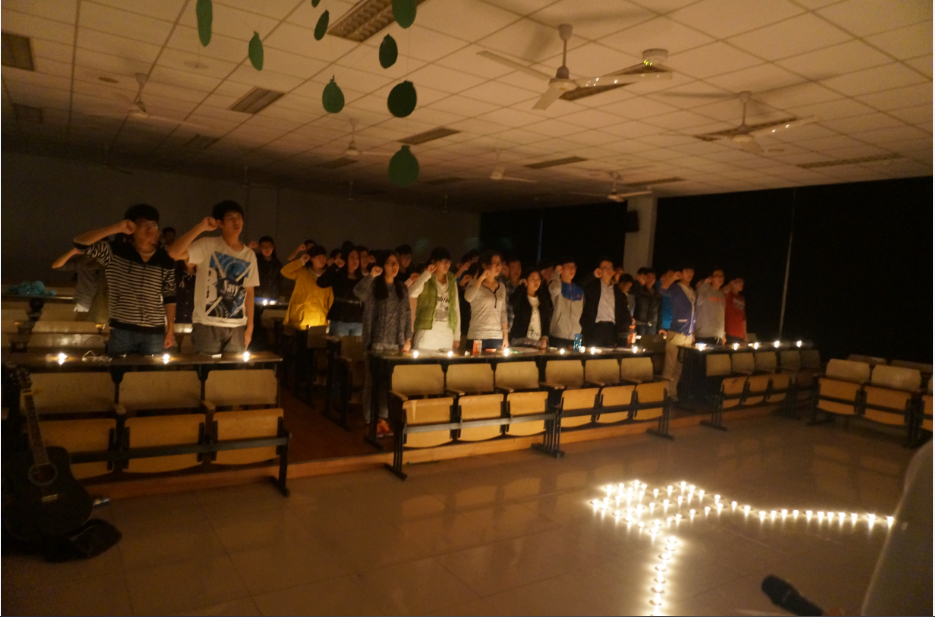 主题音乐会响应由世界自然基金会WWF发出的“地球熄灯一小时”的号召,紧紧围绕“蓝天自造”这一主题。活动正式开始前,全体同学为马航事件中遇难的同胞默哀一分钟,同时实践“地球一小时,熄灯为环保”,熄灭了全场灯光,点亮了数十只蜡烛。