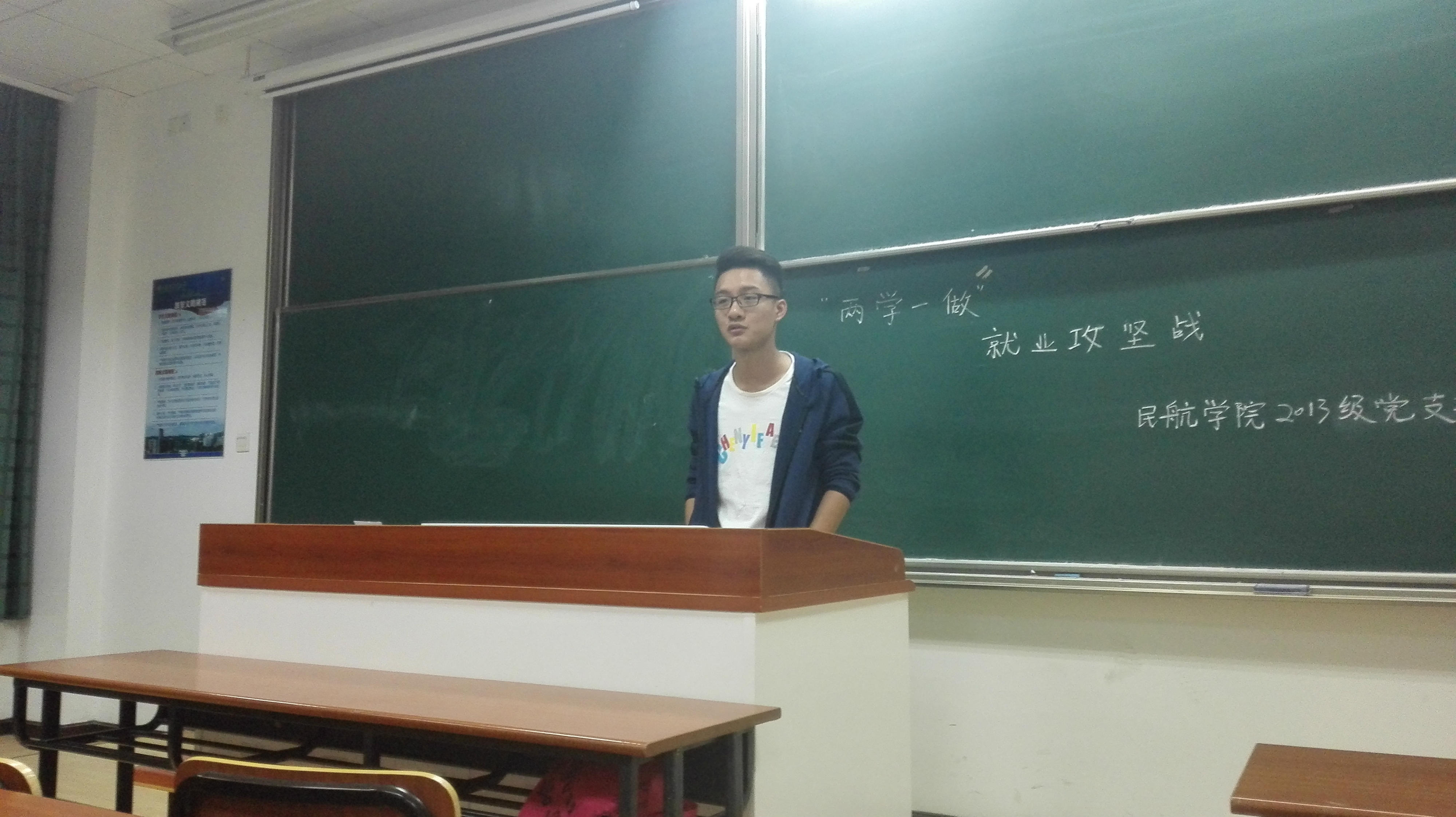 会议中,首先由成正强同学向大家通报了此次到场党员人数,说明了本次大会的主题,即“就业攻坚战”,希望党支部能够发挥党员先进模范作用,进一步帮助年级提高就业率,帮助成绩差的同学赶上金九银十就业季的“末班车”。