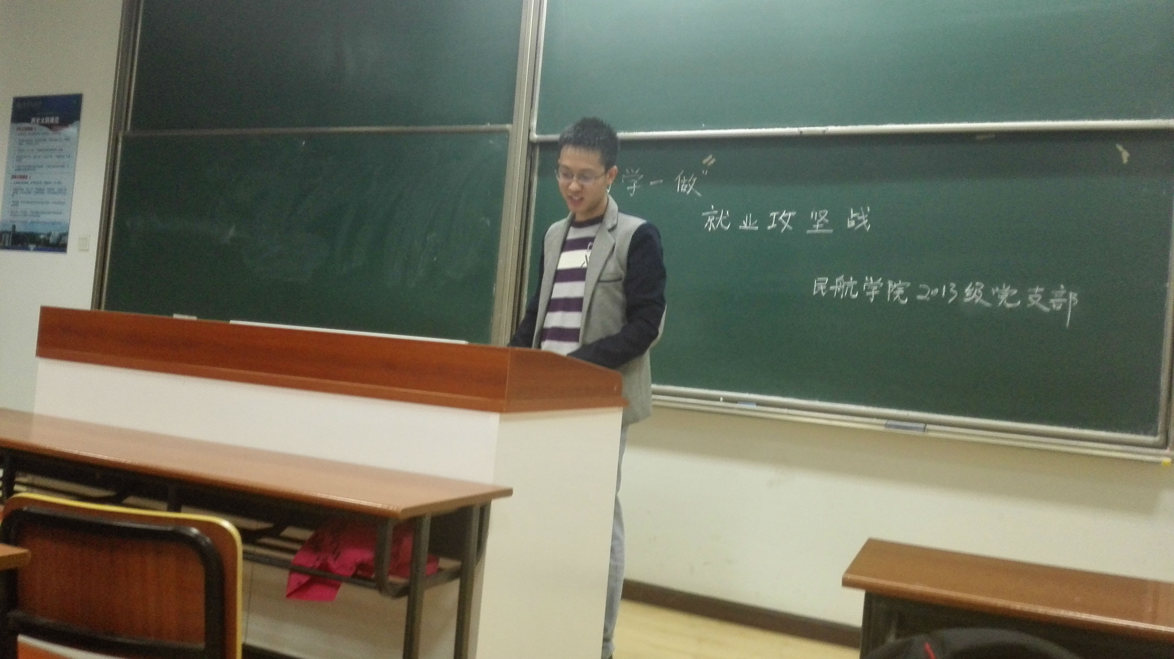 听过郭宇帅同学关于目前就业情况的介绍后,每个班的党员代表都上台针对本班未就业人员的具体情况进行了交流探讨。最后,经过大家一致同意,党支部在未全部完成就业的班级设立了就业党小组,希望党员能够针对性地帮助那些需要帮助的同学,赶上就业的末班车。