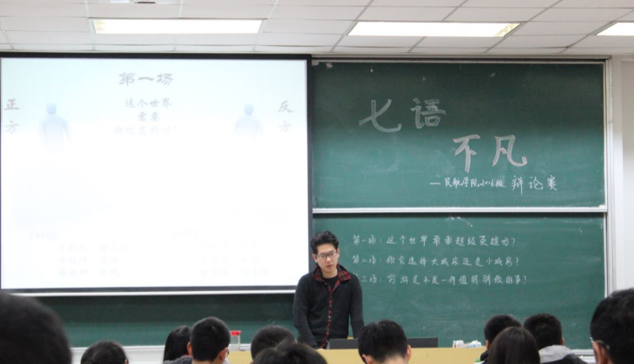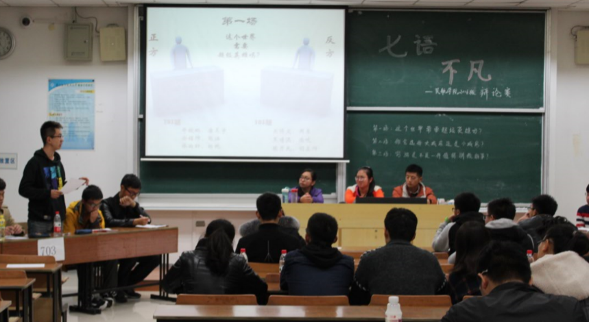12月10号18点30分,皇家华人 2016级在6301教室举行了“七语不凡”辩论赛复赛。初赛晋级的五支代表队和中心组代表队,围绕着三个具有鲜明时代气息的辩题,你辩我驳,不让高低。此次复赛中,201、303、703更胜一筹,同时,关博文、张涵、卢子钊、颜明辉被评选为“最佳辩手”并晋级决赛。