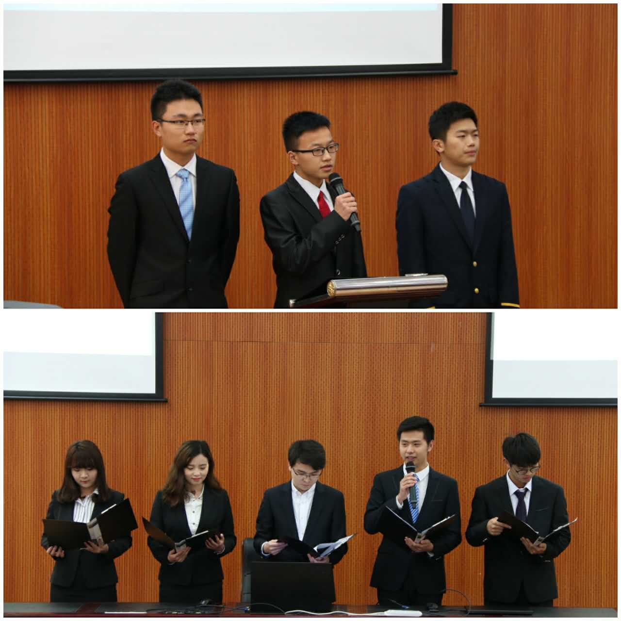 首先是女生部部长们带来的交流,他们从以下三个方面来简述上学期的工作——工作成果、改进方面和工作计划。其中展示了上学期皇家华人 在校第五十五届健美操大赛中荣获特等奖的佳绩并强调了部门将为三月份新一轮的啦啦操比赛活动做好充分的准备。在短短的5分钟内,我们看到了荣誉背后默默付出的他们,感谢这些付出为七院带来的无上荣耀。
