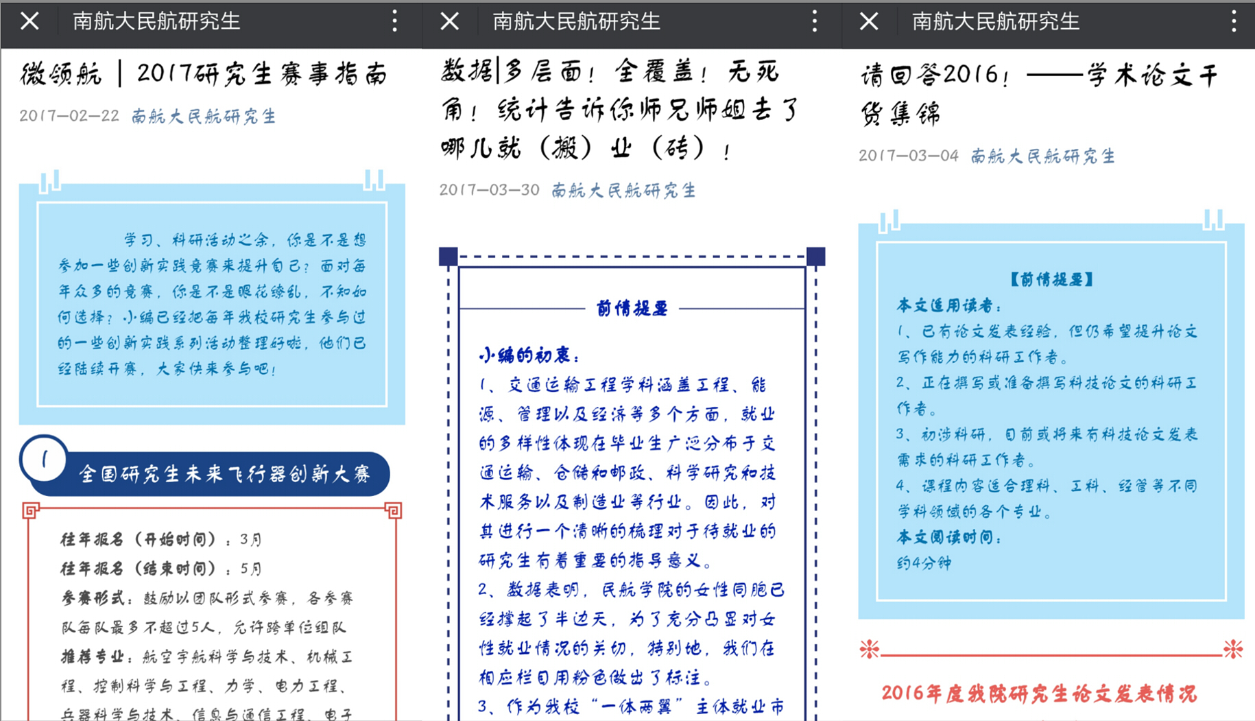 2017届研究生毕业季系列活动,以真挚的情感感染人,以丰富的活动教育人,以科学的规划塑造人,为即将毕业的学子们画上一个圆满的句号,同时引导研究生在毕业之际感恩师长、奉献母校,坚定理想、立志民航,增强毕业研究生爱校荣校情结。今日南航民航人,明日民航南航人!