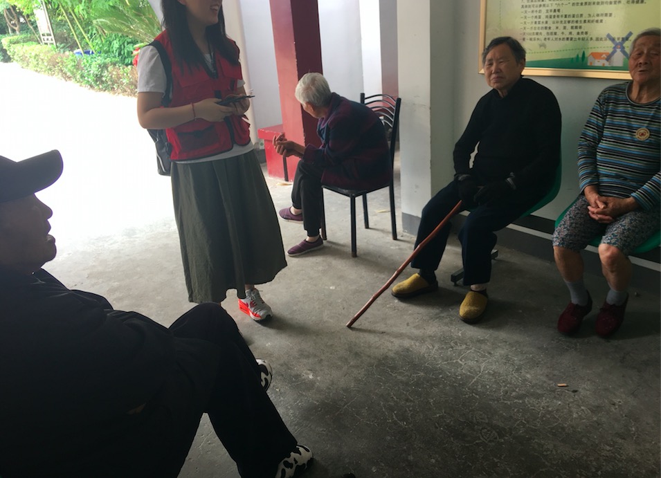 我们走进了爷爷奶奶们的休息室中,坐在他们的床边开始亲密的交流,仿佛自己就是他们的孙辈。活动的第一部分即“唤醒历史记忆”,我们以采访的形式,请爷爷奶奶为我们描述他们眼中的中国共产党和党的发展故事,并且讲述他们亲身经历的抗日时期的故事。一谈起战争时期和中国共产党,爷爷奶奶们都心情激动,心中都藏着许多自己与战争的青春故事。