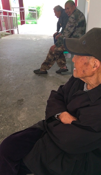 一来到敬老院,坐在过道的亭子里乘凉的爷爷奶奶们热情地与我们打招呼,一位身着迷彩服的老爷爷与我们郑重的握手,这是一位耄耋老人,是一位曾经的共产党战士。在敬老院正门的侧边,我们看到了“学党章党规、学系列讲话、做合格党员”的展览标语板,敬老院的一些老党员们也时刻在跟进改革开放时代,不断学习并恪守党章党规。