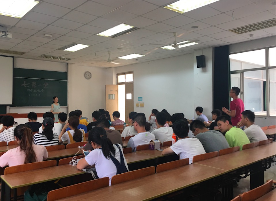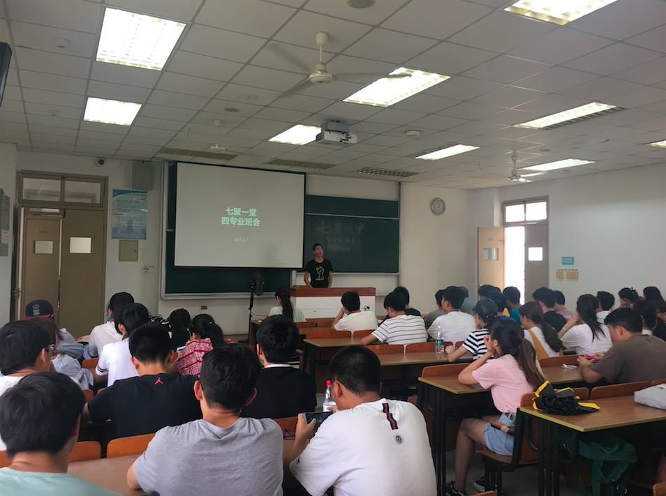 班会的第一个环节,是来自曹晓威学姐的学习和生活的经验分享。首先,学姐主要从学习上对自己的大学生活及读研的生活进行了简要的介绍。“功夫在平时”,学姐建议我们要充分利用好上课的时间,上课认真听的收益比课下自学的高得多。千万不要等到临近考试才开始学习,尽管考试也能通过,但学不到真正的知识,更不会巧妙运用知识。同时,学姐也希望同学们能逆水行舟,在往后的学习中能保持一颗初心,踏踏实实求学。