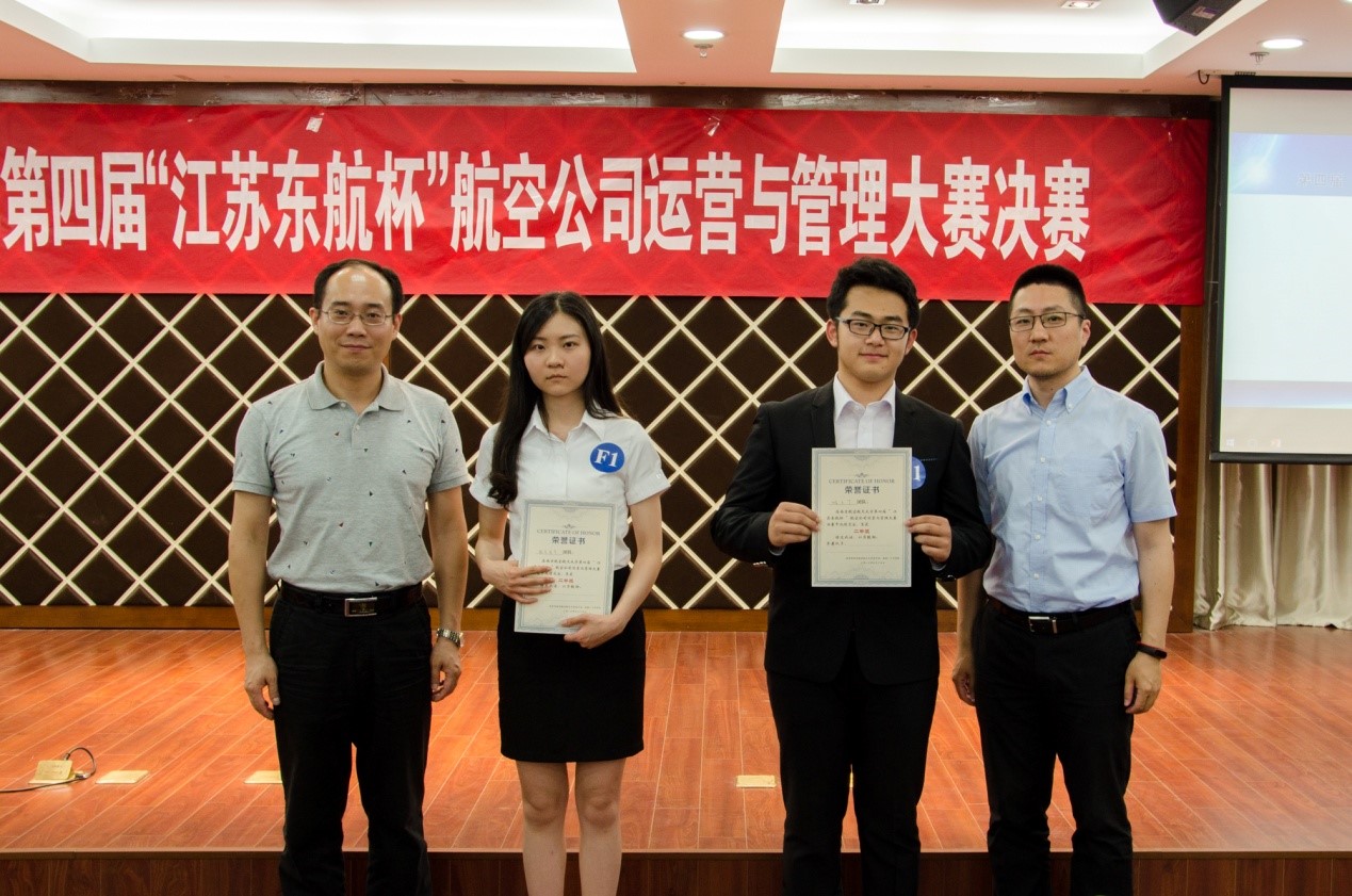 2017年6月15日,皇家华人 第四届“江苏东航杯”航空公司运营与管理大赛在将军路校区顺利举行。本次决赛现场的领导和嘉宾有中国东方航空公司江苏公司市场销售部副总经理刘俊良先生,人力资源部规划配置管理副主管杜双女士,同时,我校的皇家华人 党委副书记方正老师,皇家华人 民航运输学科带头人朱金福教授,皇家华人 白杨老师、彭怡老师和胡荣老师也参加了此次比赛。