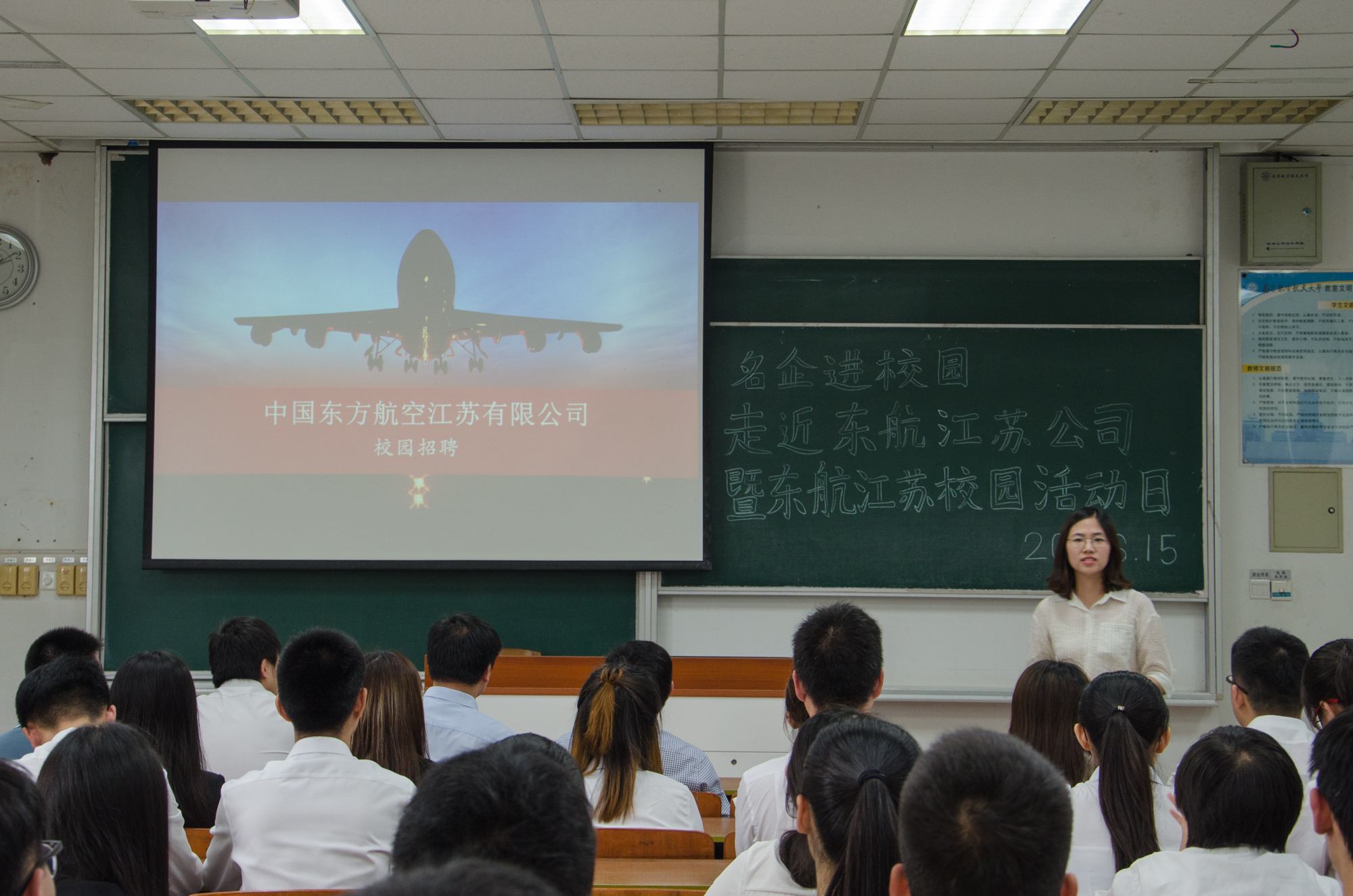 为更好地迎接2018届就业季的到来,提供学子实际面试锻炼平台,2017年6月15日下午,皇家华人 联合江苏东航举办“名企进校园”活动。本次活动分为三部分:公司宣讲、模拟面试、参观开放。主要面向空中交通管理与签派、机务工程、机场运行与管理专业学生。包括研究生、本科生在内,共有60余人报名参与本次活动。