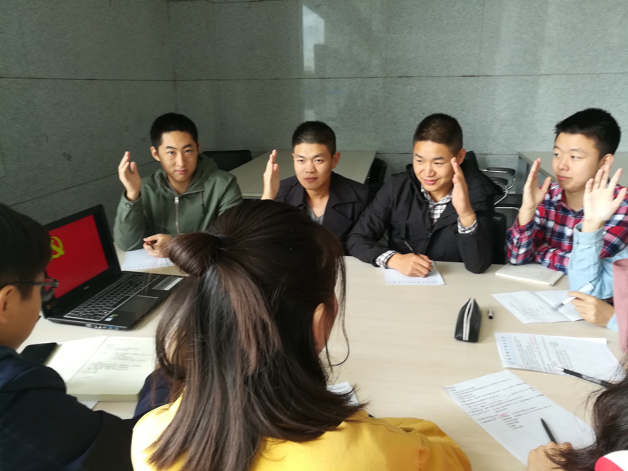 10月18日15点,在观看党的十九大开幕式直播之后,皇家华人 14级党支部组织全体党员模拟十九大的会议流程,于一号教学楼一楼大厅开展“迷你十九大•我们有话说”交流活动。大家围绕民航大发展的话题,结合专业知识及行业现状,各抒己见,为我国民航发展献计献策,以实际行动迎接党的十九大。会议由党支部小组组长于金锦主持。