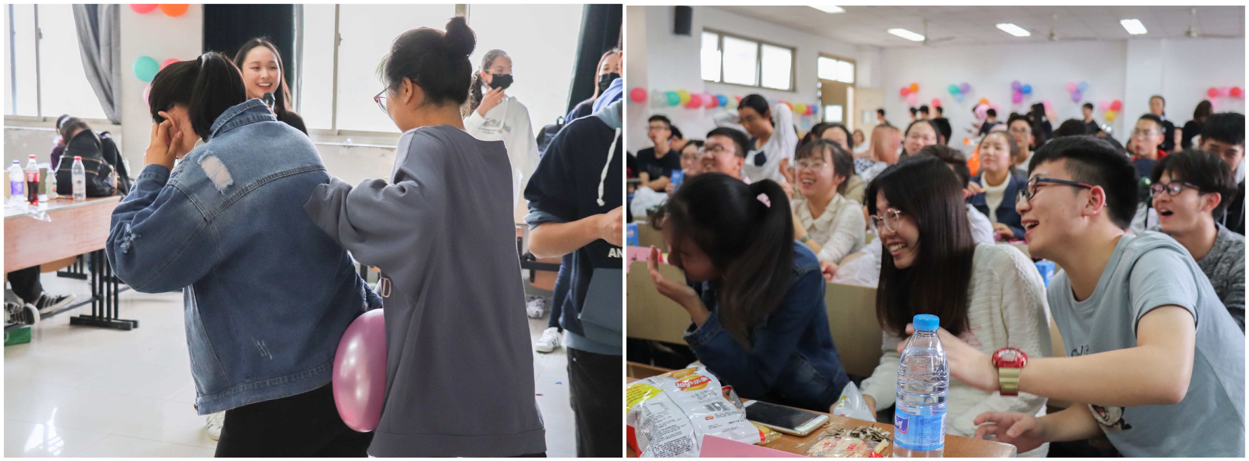 除了丰富多彩的节目,晚会还设置了传水、夹气球、吃水果等小游戏,让同学们在欣赏节目的同时更能充分享受晚会的乐趣,不仅充分调动了在场同学的参与性,更是将现场气氛一次又一次代入高潮,欢呼声一浪高过一浪。