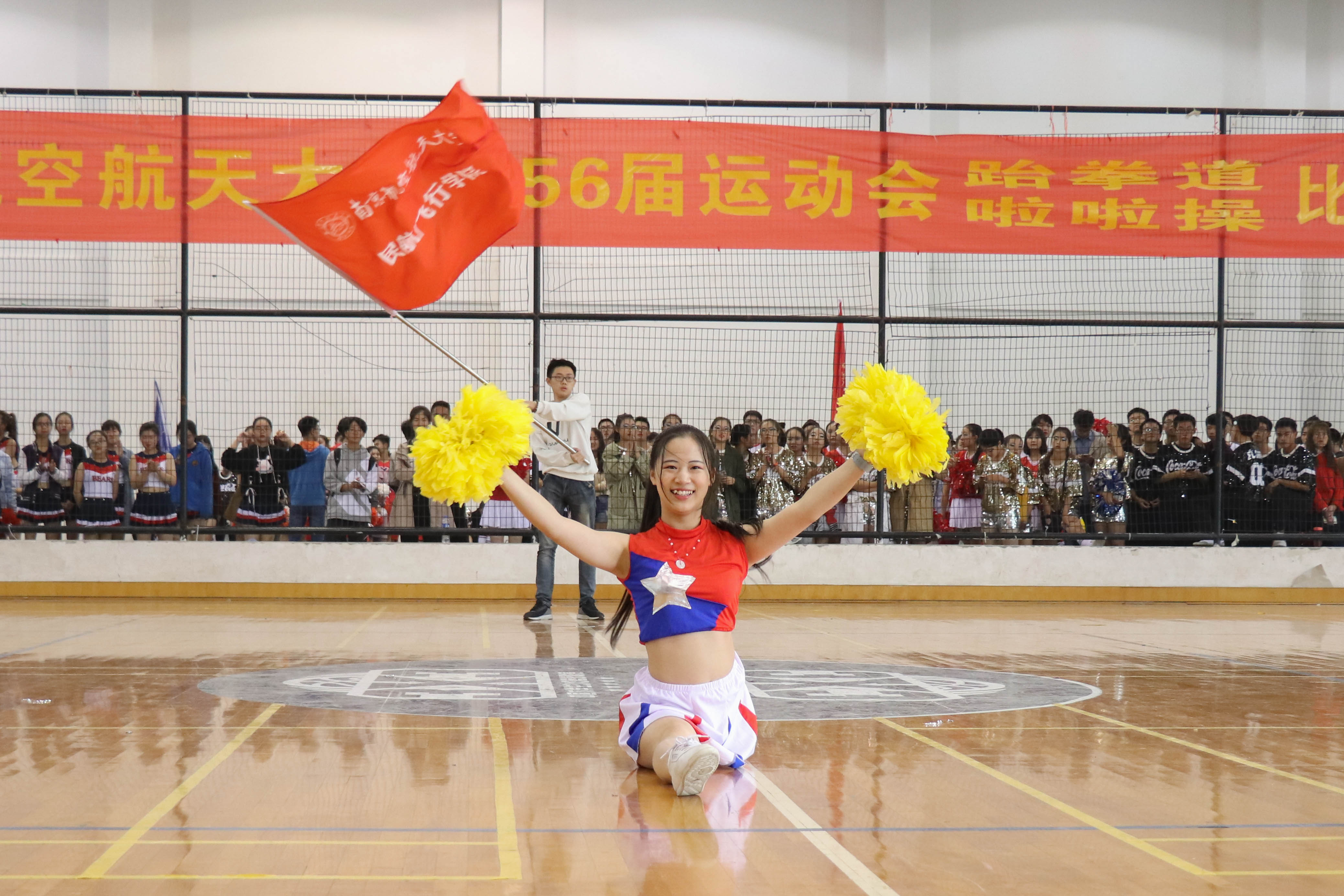 10月22号上午9点半,在十九大的召开与六十五周年校庆之际,皇家华人 于将军路校区的体育中心正式举办第五十六届运动会啦啦操比赛。比赛分为小团体、单人、大团体三个项目,全校共有13个院派出代表团队参与比赛,以展现我校学子的青春风采,调动全校运动健身的良好氛围,民航飞行皇家华人更是积极地参与到其中。