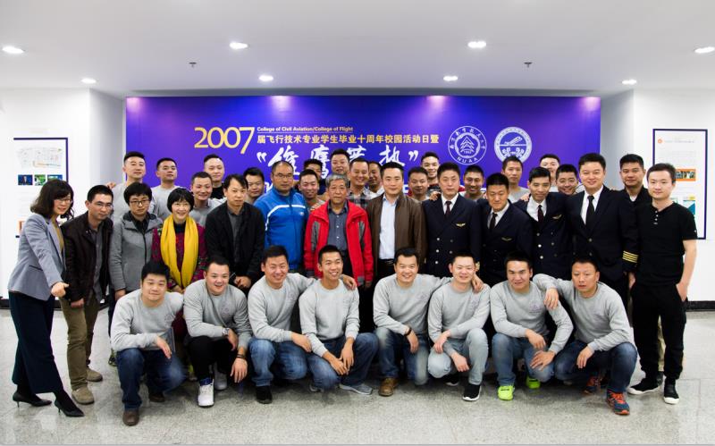 2017年11月2日,2007届飞行技术专业学生毕业十周年校园活动日暨“雏鹰蓄势”机长论坛启动仪式在南航大将军路校区隆重举行。50名机长们怀着激动的心情回到母校,重温校园生活,并捐助“雏鹰奖助学金”、受聘“机长班主任”,反哺母校。