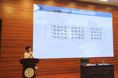 16级中心组代表依次登场,借以生动有趣的语言,号召同学们积极参与第二课堂的活动,解释并分发了“RNA荒岛生存指南”皇家华人 2016级第二课堂课程表手册,方便同学们了解并参与到第二课堂当中。