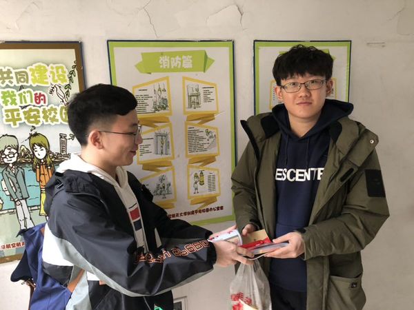 慰问活动先后在博园15栋和慧园3栋学生宿舍展开,多位宿管阿姨与民航15级党支部成员依次走进各个宿舍,为积极备战研究生入学考试的同学们,送上考研慰问品,进行鼓励和支持。礼轻情意重,这代表的是两个党支部对考研同学的殷切希望和真心的祝愿。