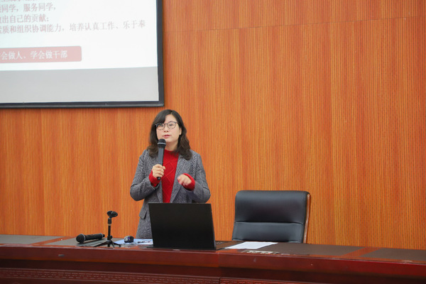 第一讲课堂以“学生干部经历造就职场优势”为主题,傅成成结合工作经验,通过一系列学生工作案例阐述了学生干部应有的能力和素质,深化了同学们对于学生干部的认识,并在课堂结尾对每一位学生干部作了”心中有爱、肩上有担、腹中有墨、胸中有识、目中有人、手中有艺”的”六有”寄语。