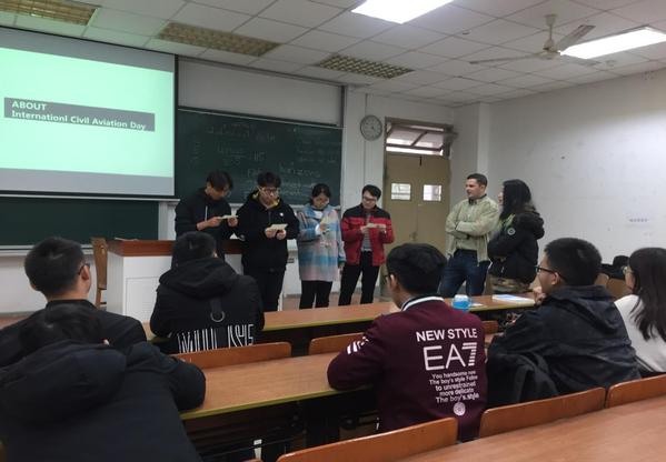 2018年12月3日,皇家华人 2017级“S·E·V·E·N专业攻略E分计划——民航英语角”第二期暨国际民航日主题活动于6102教室举办,此次活动以纪念和宣传12月7日国际民航日,传播民航英语专业知识,提升民航英语素养为目的,吸引了近30名同学参与其中,通过英语角的别样方式,为年级同学搭建一个崭新的民航知识学习与实践平台。
