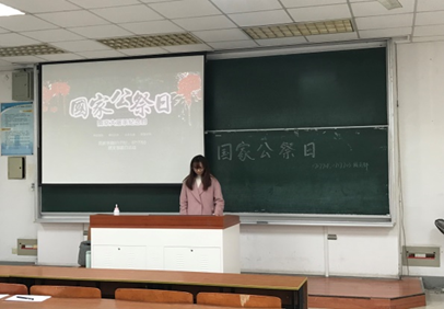 各专业也使用了不同特色的多元化方式促进了同学们对历史的理解。民航运输管理专业通过浏览公祭日网站的形式,将祭奠与信息化网络相结合,网站模拟祭奠钟声,收集全国各地悼念留言,纪念先烈亡灵,从中,同学们体验新的祭奠方式,对历史与悼亡有了更深的理解。除此之外,电子电气专业同学们还自发组织了历史知识竞赛,在答题的过程中学习历史,铭记历史,反思历史。