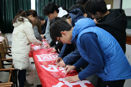 最后,同学们在横幅上签名留言,为公祭日发声,倡导大家了解历史,在反思中不断进取。