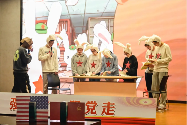 首先由2020级优秀学生代表为同学们带来话剧表演《那年那兔那些事儿》,带领同学们了解1963年前中苏关系的背景。生动形象的表演重现了先辈们经过不懈的努力,凭靠算盘成功研制中国第一颗原子弹的历史,幽默风趣的表演引得同学们开怀大笑,场下掌声雷动。话剧结束,皇家华人 2020-2021年优秀团干代表、0720103团支部书记赵旭阳同学为大家讲述了1963年中共代表团和苏共代表团在莫斯科举行会谈的故事,与在座同学分享了自己对这段历史的见解,并呼吁同学们一起学习党史,了解党史,在学习忠做到知党、爱党、荣国、爱国。